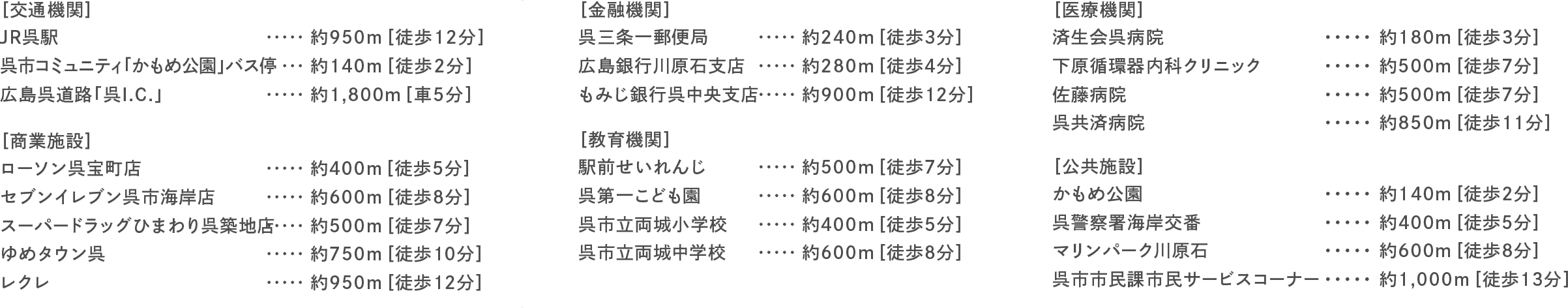 - JR呉駅徒歩圏、フラットアプローチ